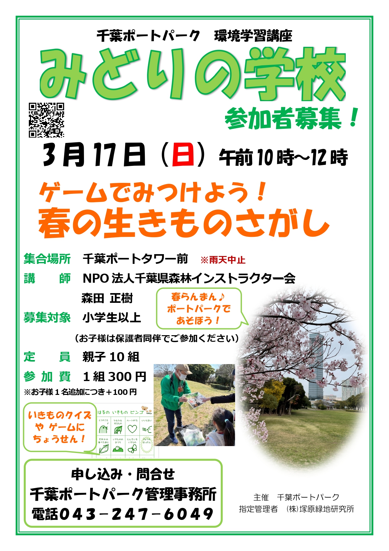 春を感じながら、千葉ポートパークでクイズ・ゲームにちょうせんして 生きものをさがしてみよう