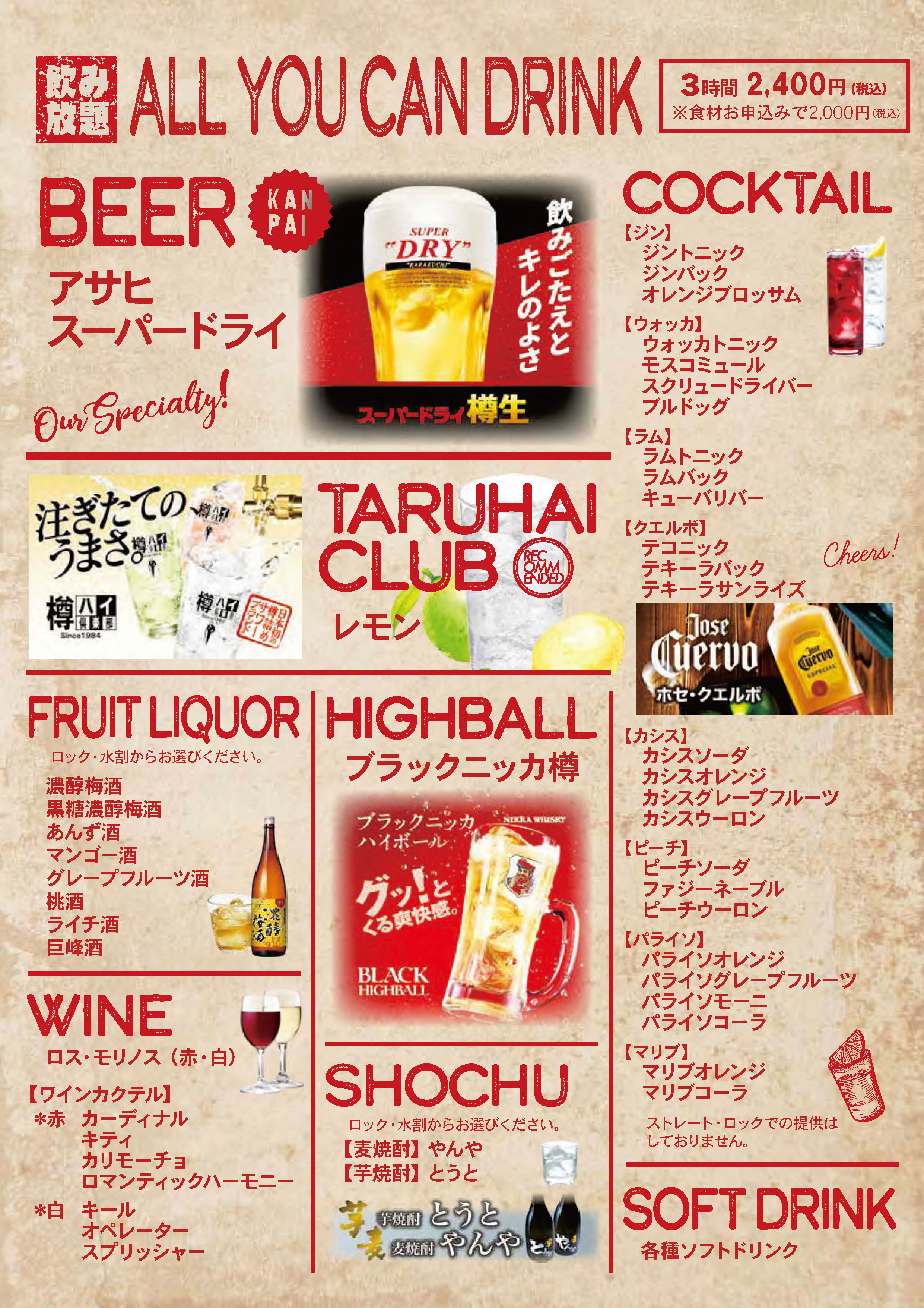 (「ソフトドリンク飲み放題」は当日お申込み可能です)